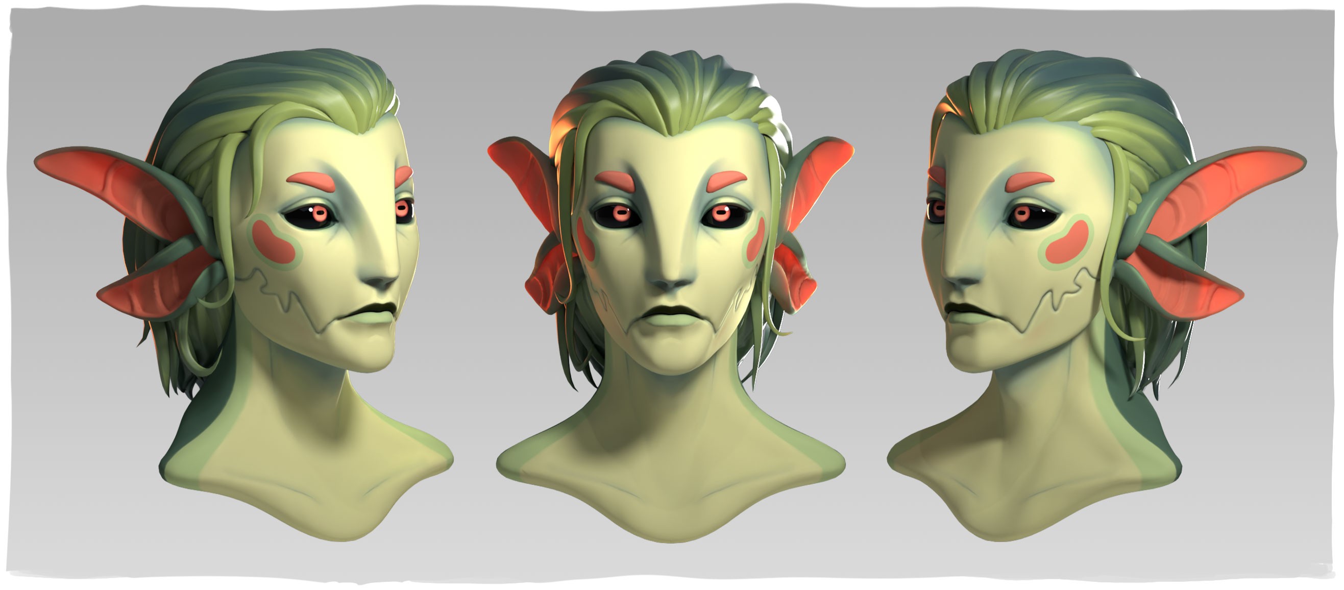 SITUATION: Bring Vi Manova's concept for Bean into 3D. Vi was most interested in how the character's nose looks from a 3/4 view with light on it from a few angles.