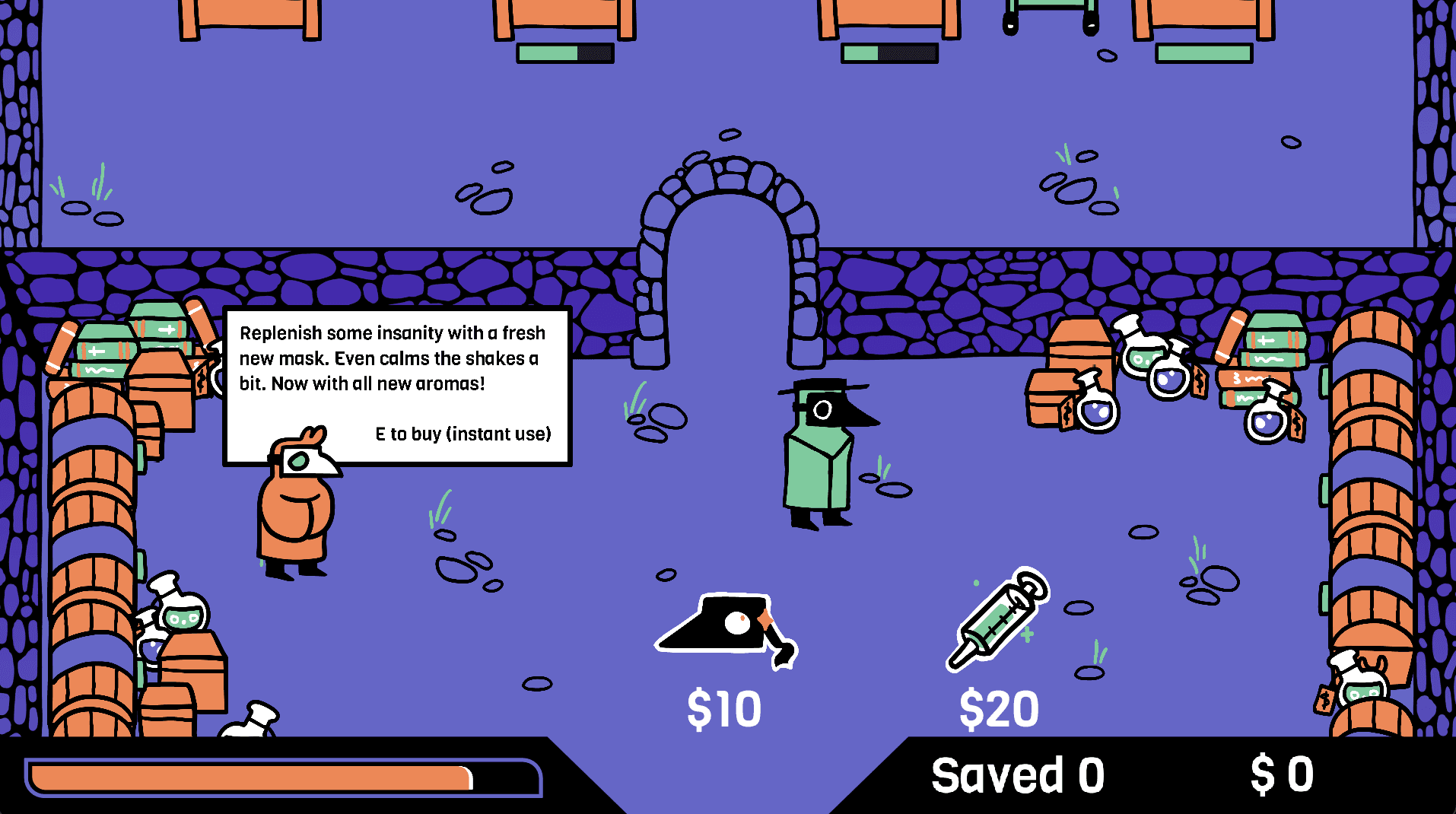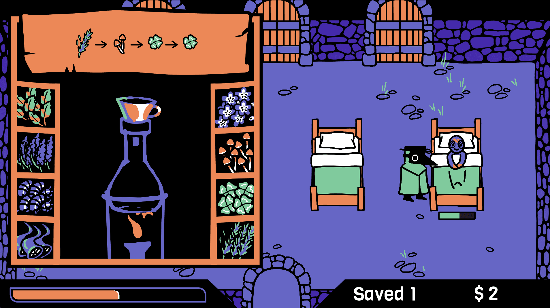 RESULT: As a solo dev, I played into the double meaning of "lose it." You try to stay sane. You brew potions to heal the sick. Time becomes your enemy.